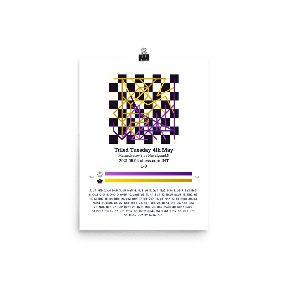 Museum-quality poster on thick, durable matte paper. A sharp, clean look for any chess visualisation.