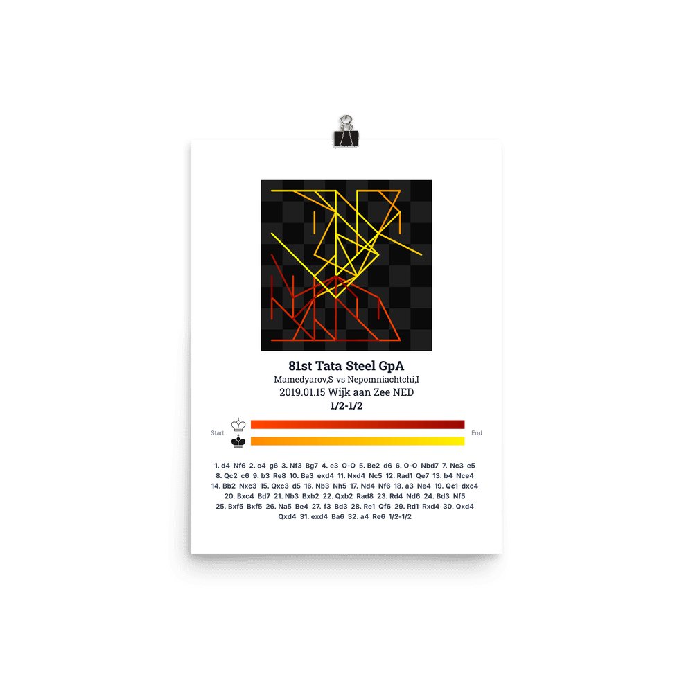 Museum-quality poster on thick, durable matte paper. A sharp, clean look for any chess visualisation.