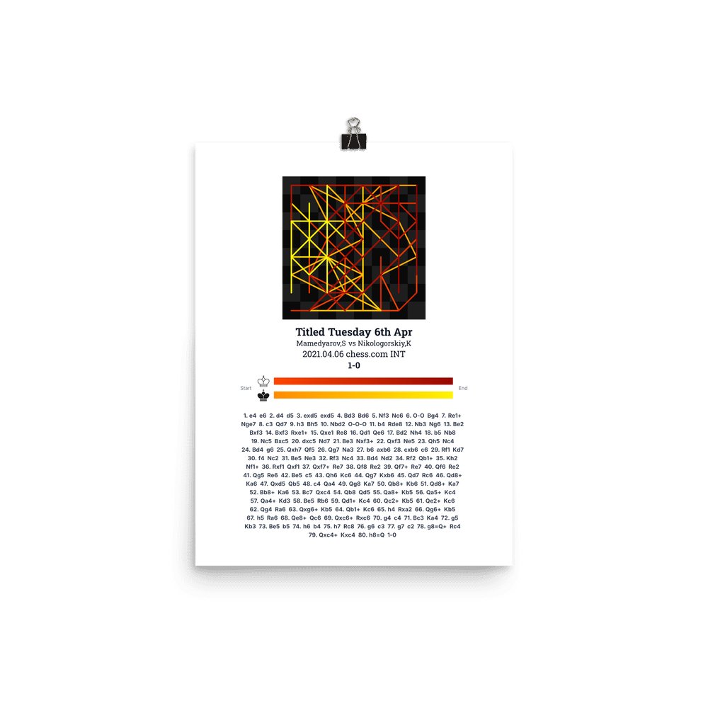 Museum-quality poster on thick, durable matte paper. A sharp, clean look for any chess visualisation.
