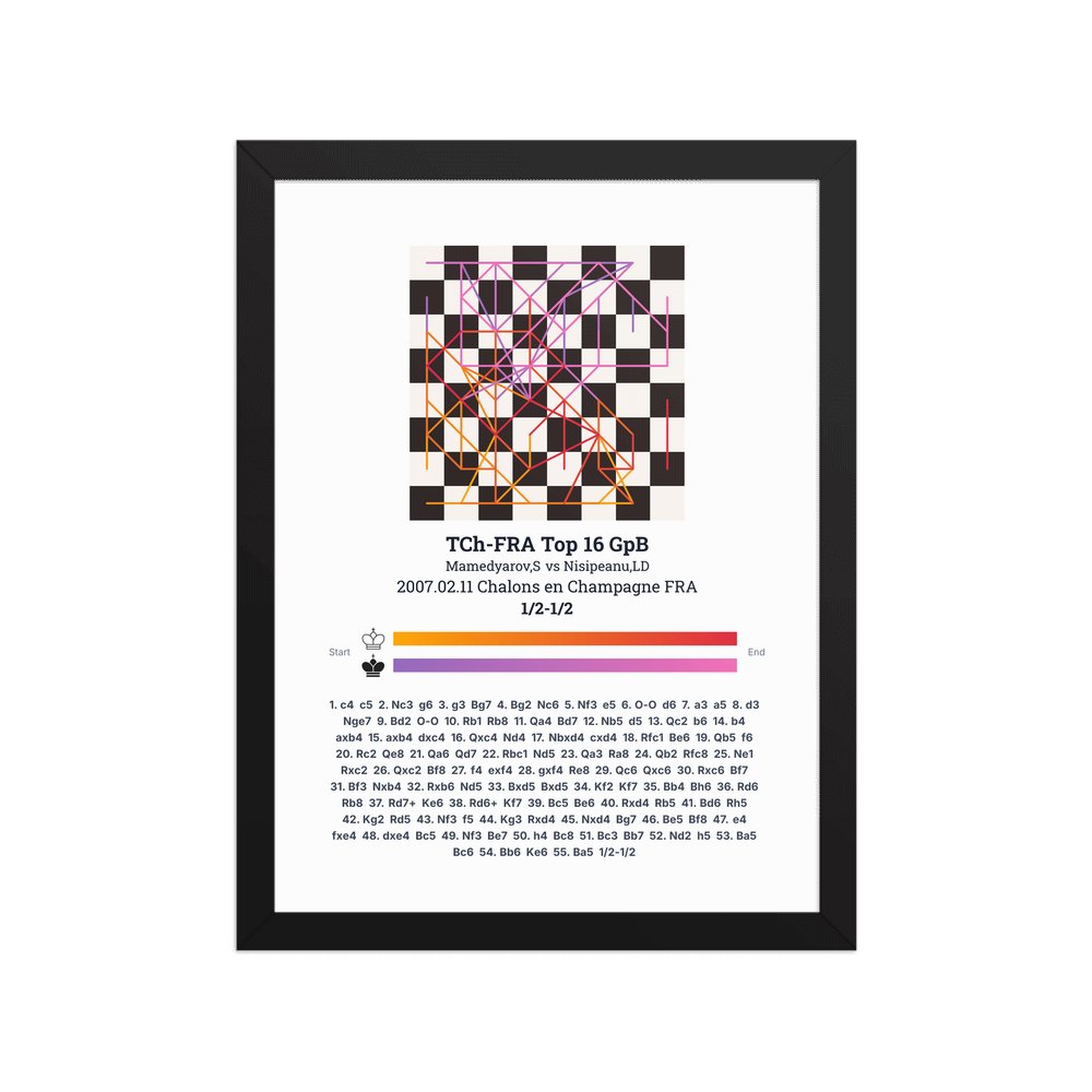 Museum-quality poster on thick, durable matte paper. A sharp, clean look for any chess visualisation.