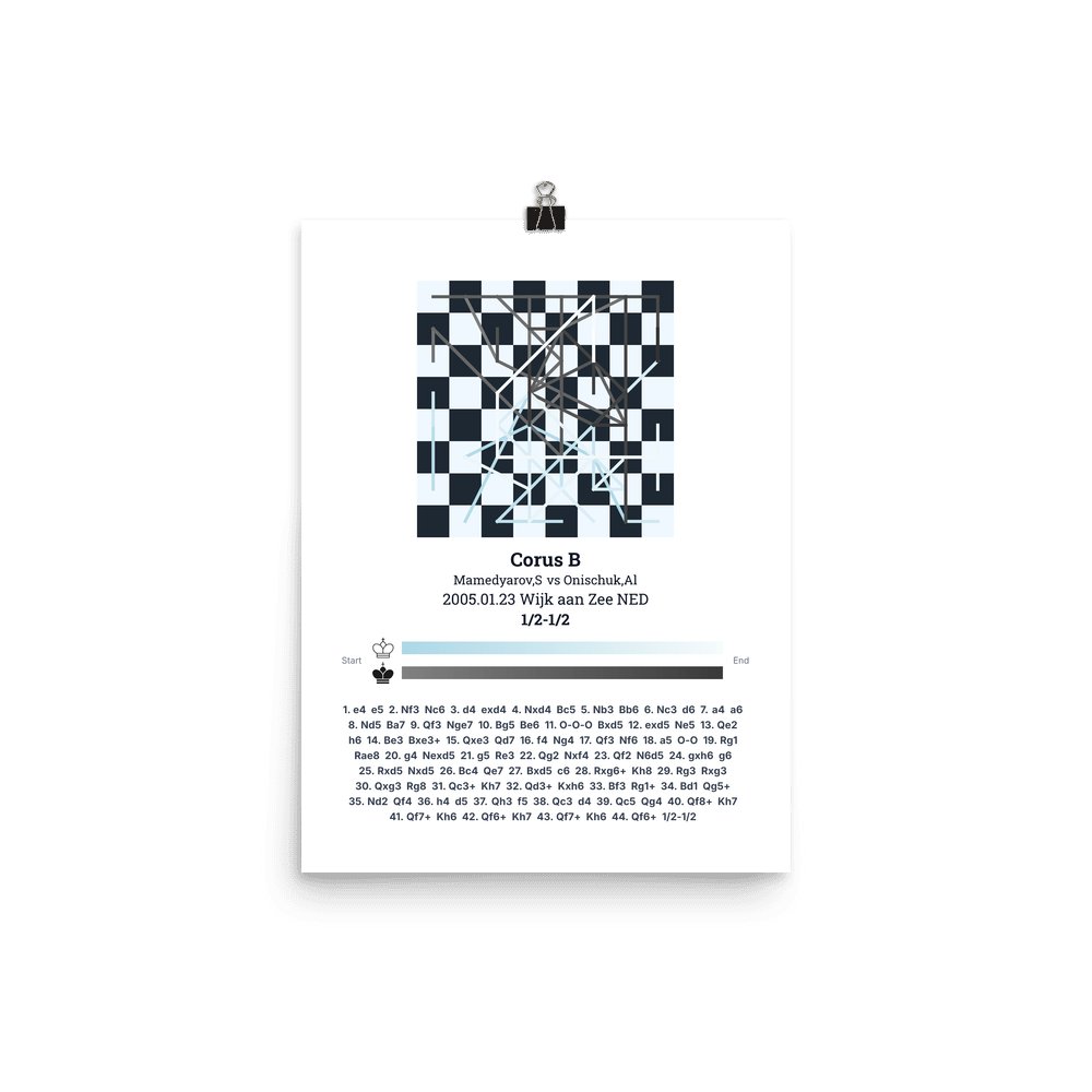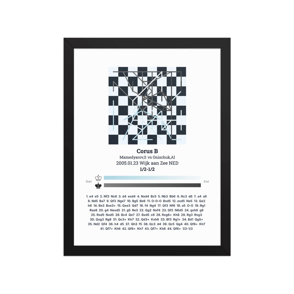 Museum-quality poster on thick, durable matte paper. A sharp, clean look for any chess visualisation.