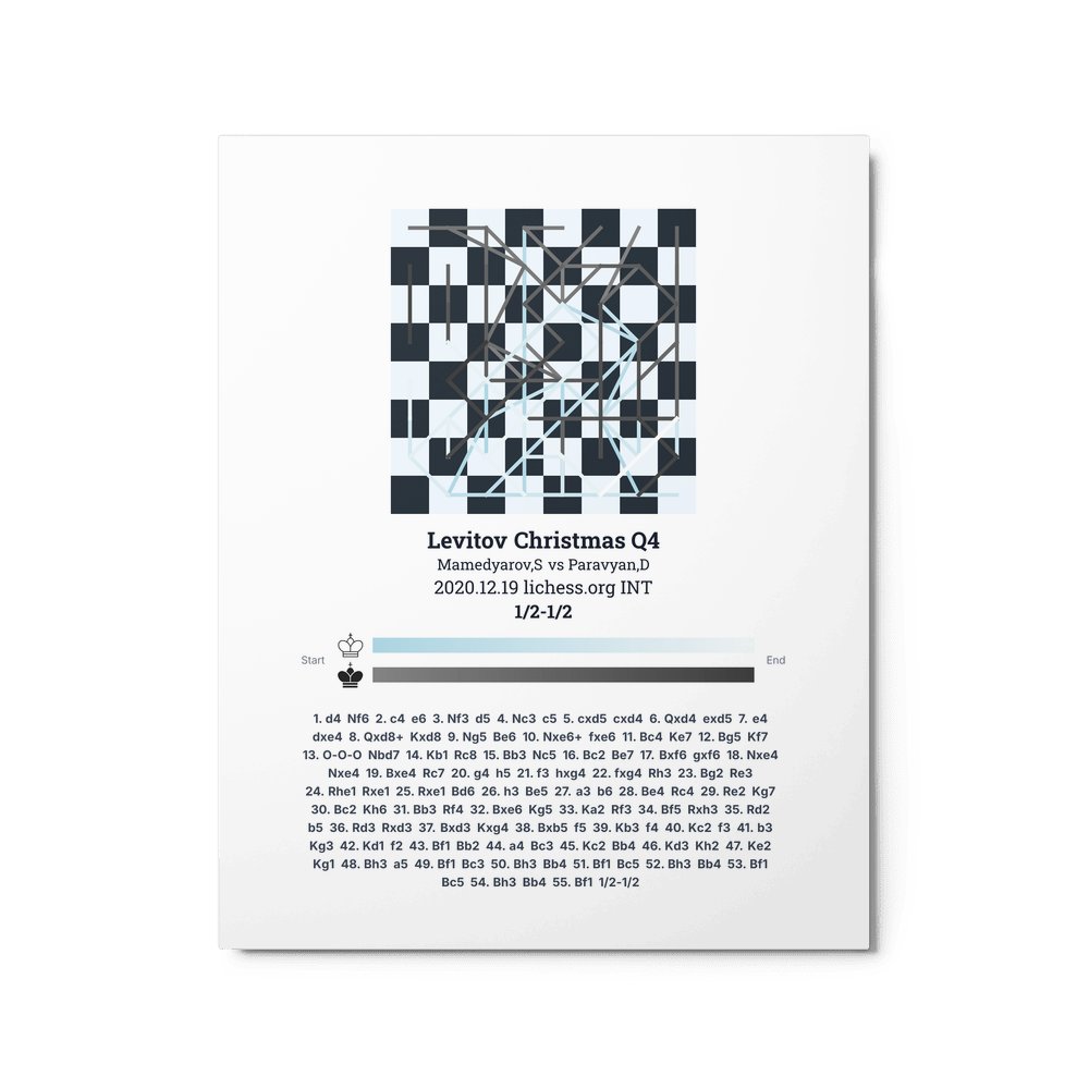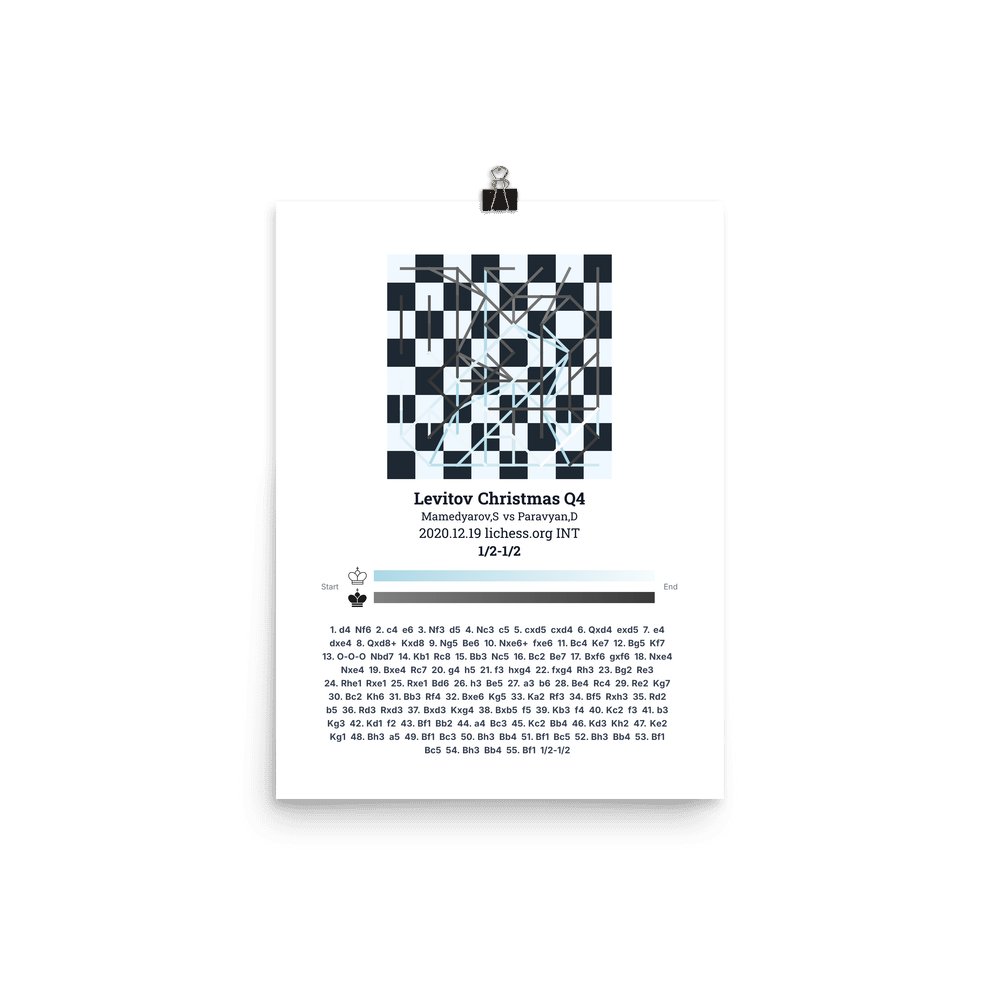 Museum-quality poster on thick, durable matte paper. A sharp, clean look for any chess visualisation.