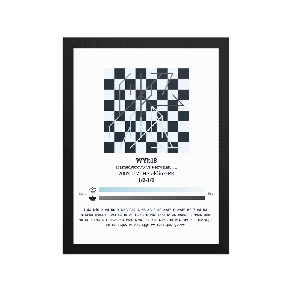 Museum-quality poster on thick, durable matte paper. A sharp, clean look for any chess visualisation.