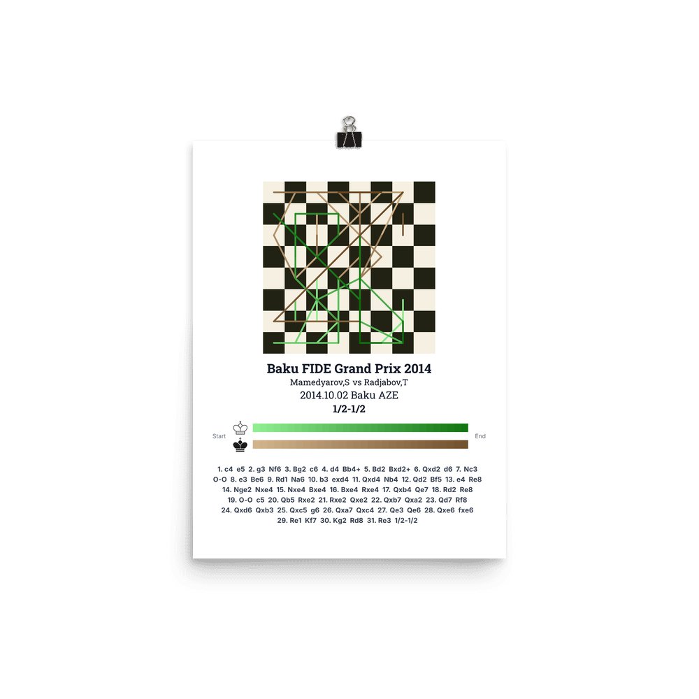 Museum-quality poster on thick, durable matte paper. A sharp, clean look for any chess visualisation.