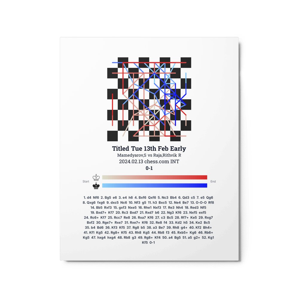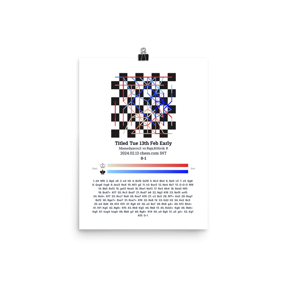 Museum-quality poster on thick, durable matte paper. A sharp, clean look for any chess visualisation.