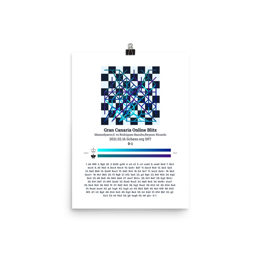 Museum-quality poster on thick, durable matte paper. A sharp, clean look for any chess visualisation.