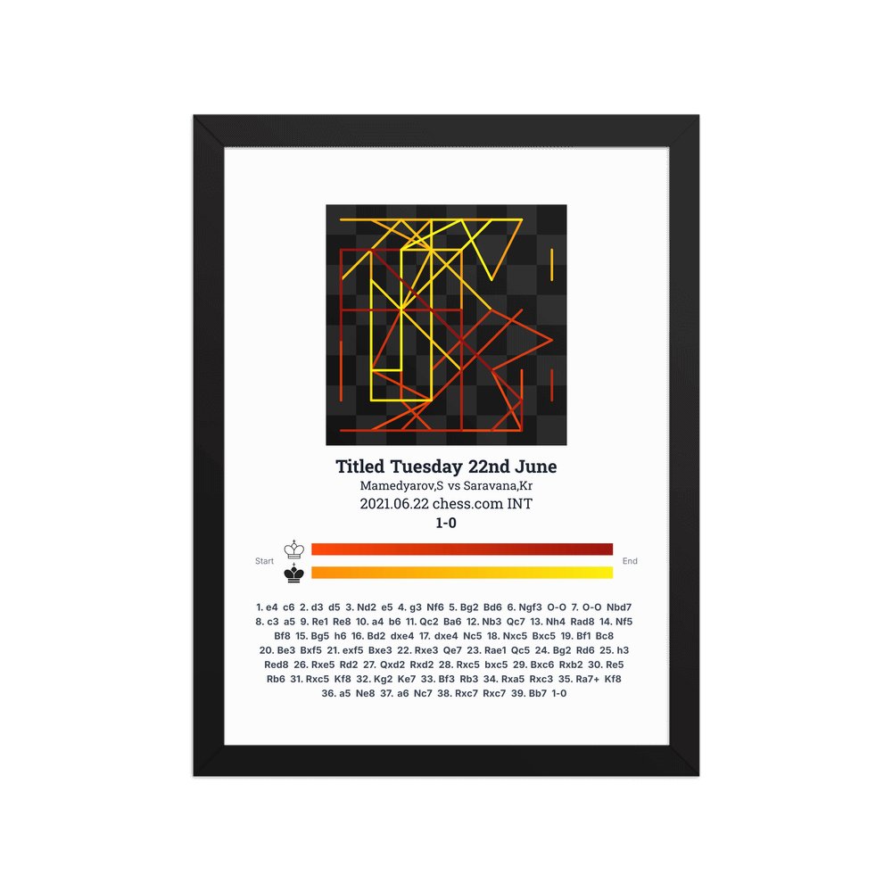 Museum-quality poster on thick, durable matte paper. A sharp, clean look for any chess visualisation.