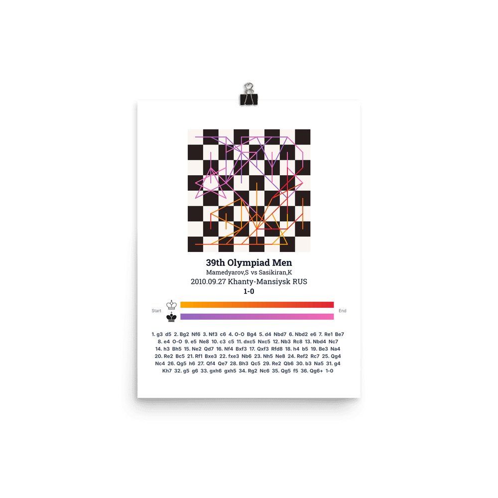 Museum-quality poster on thick, durable matte paper. A sharp, clean look for any chess visualisation.