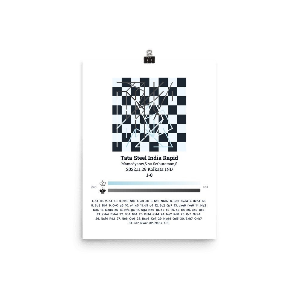 Museum-quality poster on thick, durable matte paper. A sharp, clean look for any chess visualisation.