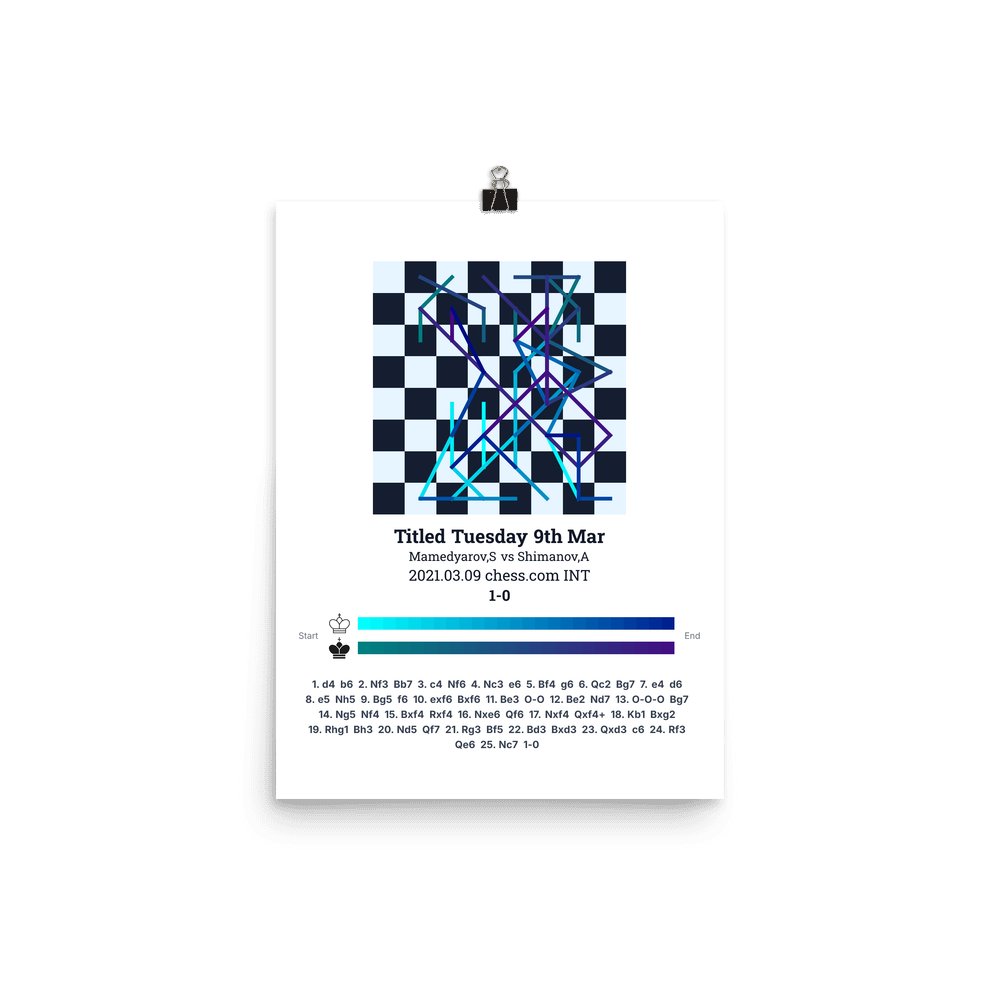 Museum-quality poster on thick, durable matte paper. A sharp, clean look for any chess visualisation.