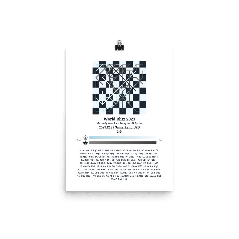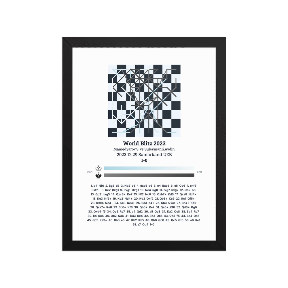 Museum-quality poster on thick, durable matte paper. A sharp, clean look for any chess visualisation.
