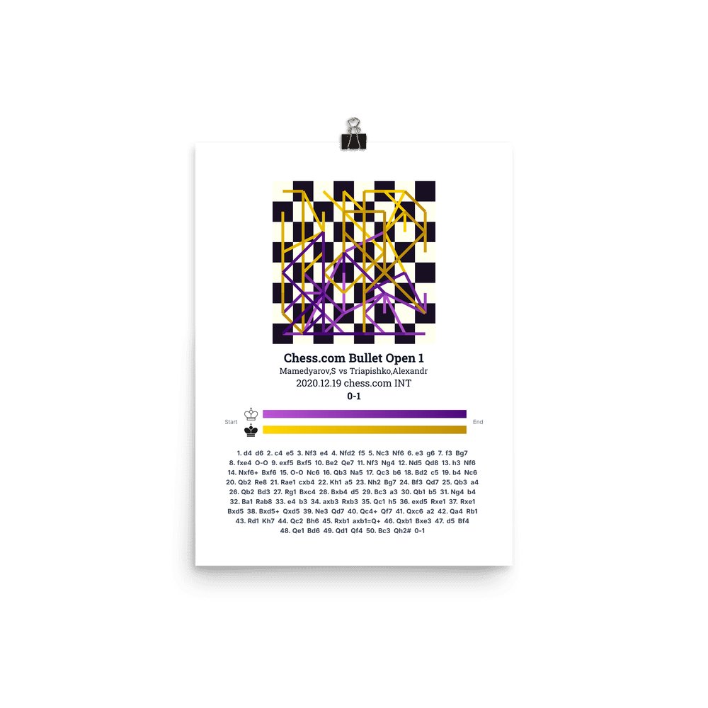 Museum-quality poster on thick, durable matte paper. A sharp, clean look for any chess visualisation.