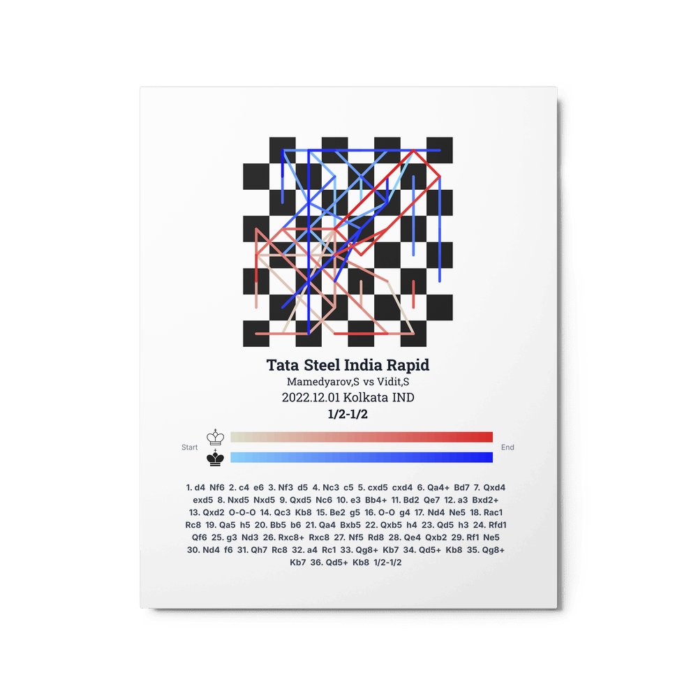 Museum-quality poster on thick, durable matte paper. A sharp, clean look for any chess visualisation.