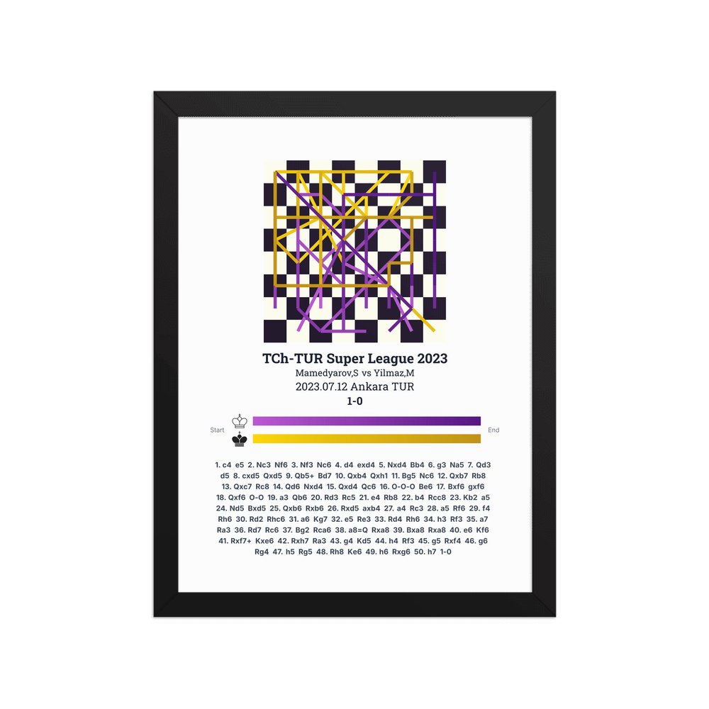 Museum-quality poster on thick, durable matte paper. A sharp, clean look for any chess visualisation.