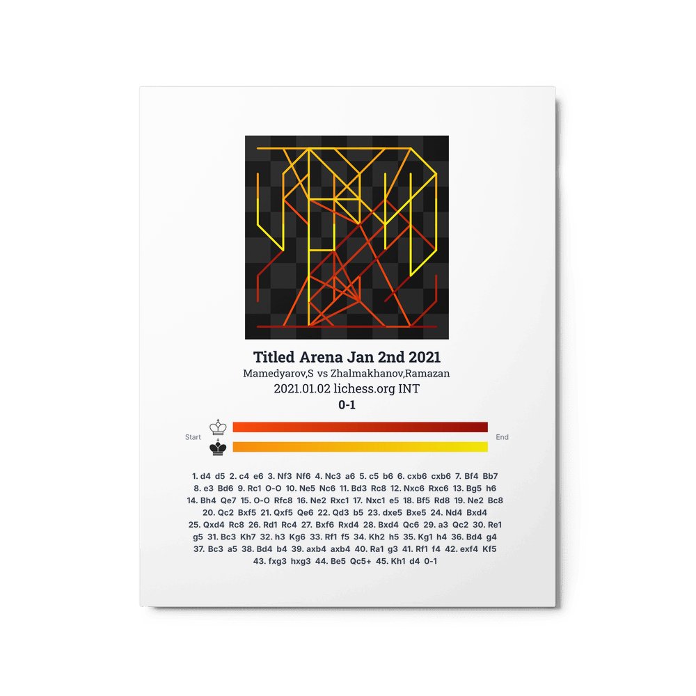 Museum-quality poster on thick, durable matte paper. A sharp, clean look for any chess visualisation.