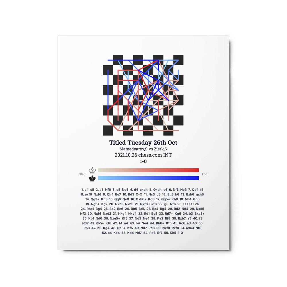 Museum-quality poster on thick, durable matte paper. A sharp, clean look for any chess visualisation.
