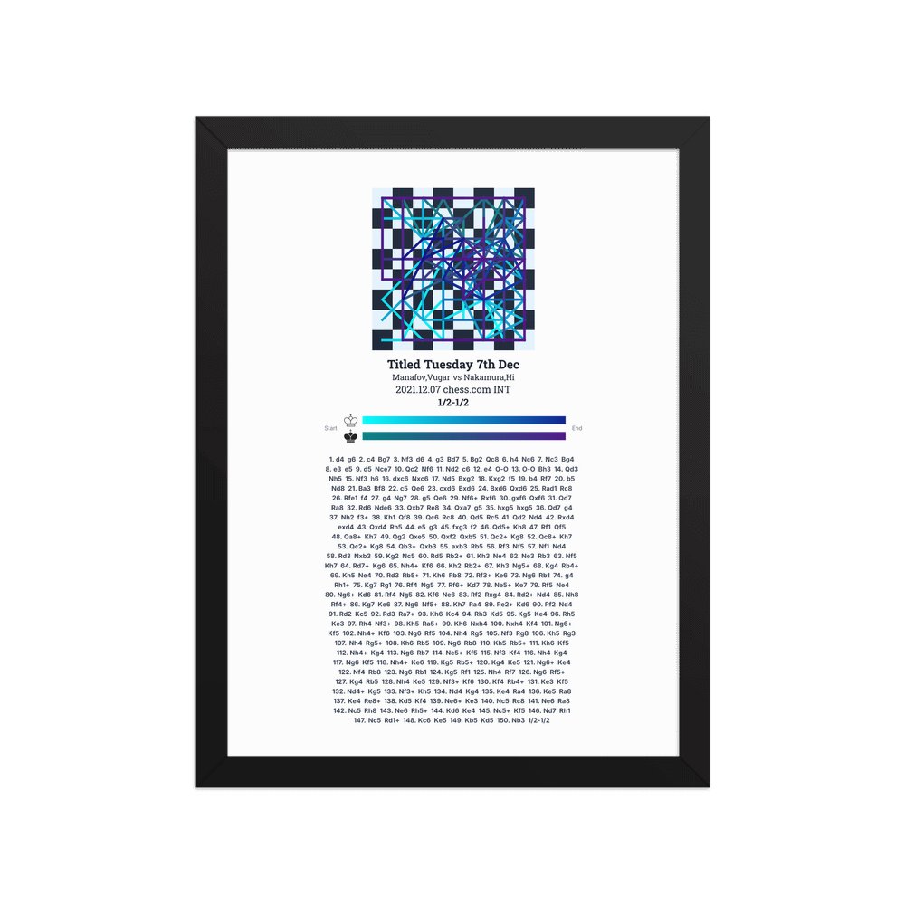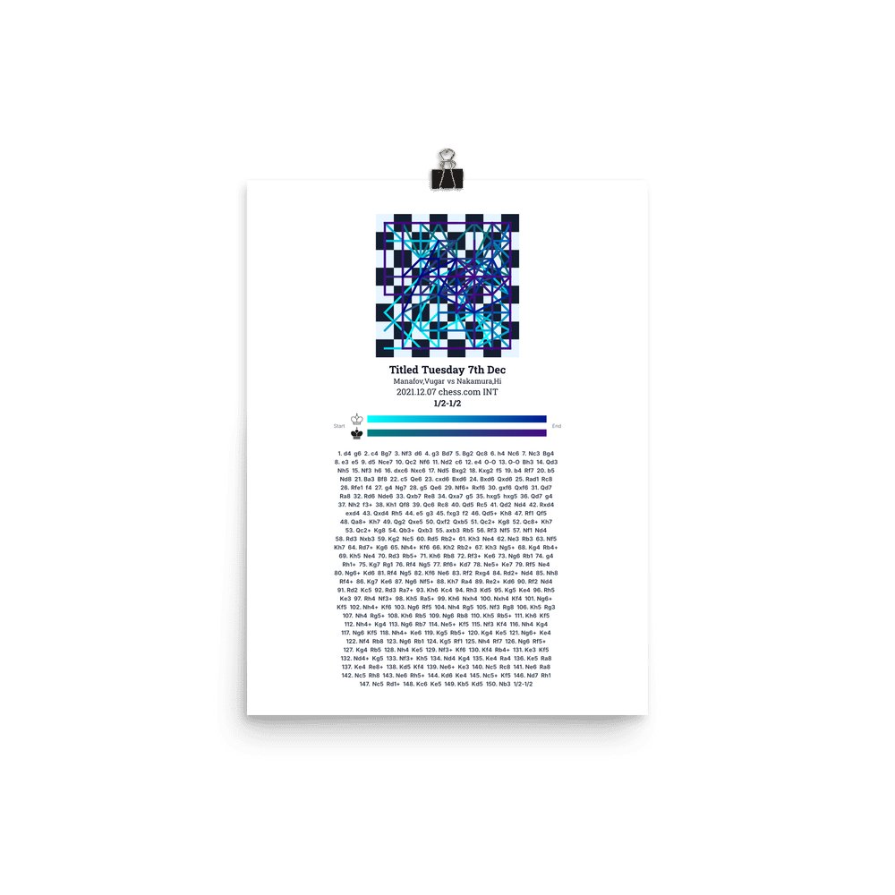 Museum-quality poster on thick, durable matte paper. A sharp, clean look for any chess visualisation.