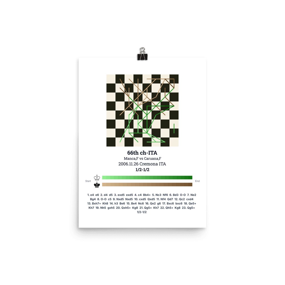 Museum-quality poster on thick, durable matte paper. A sharp, clean look for any chess visualisation.