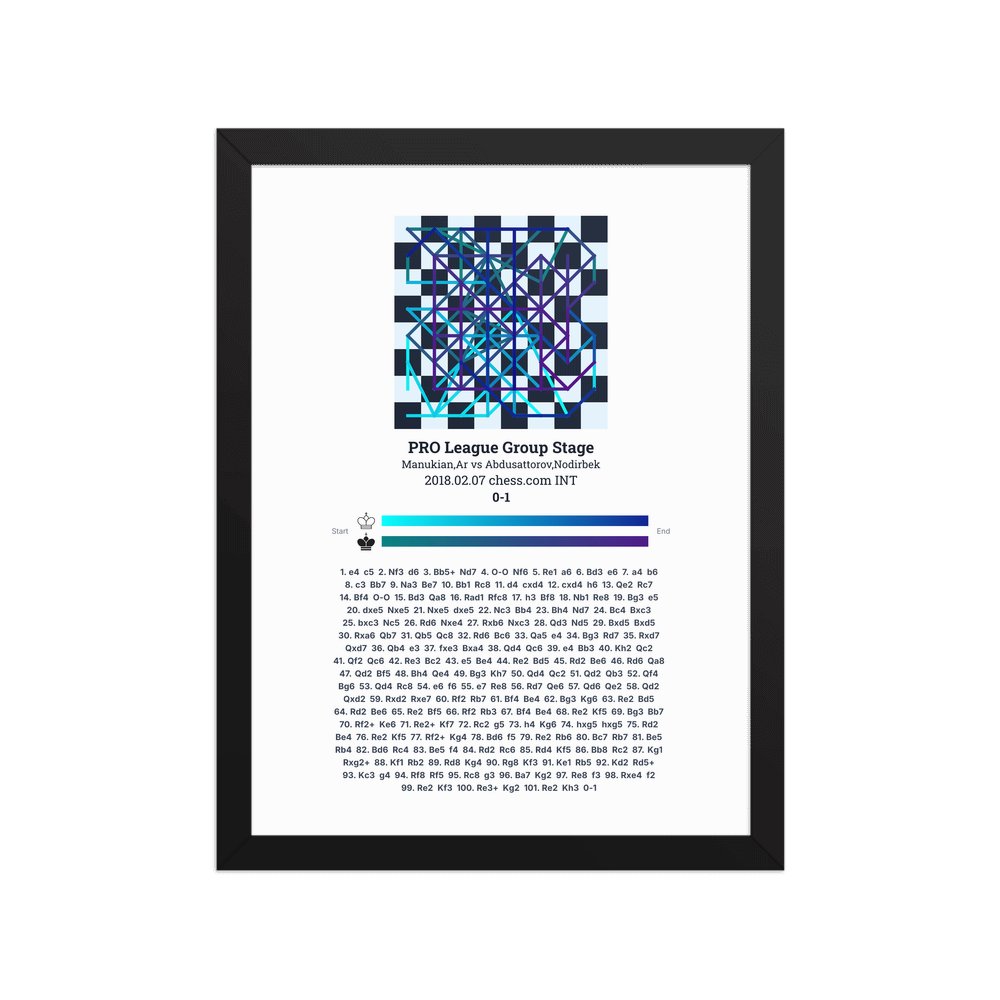 Museum-quality poster on thick, durable matte paper. A sharp, clean look for any chess visualisation.