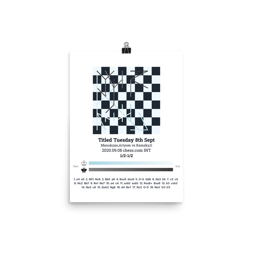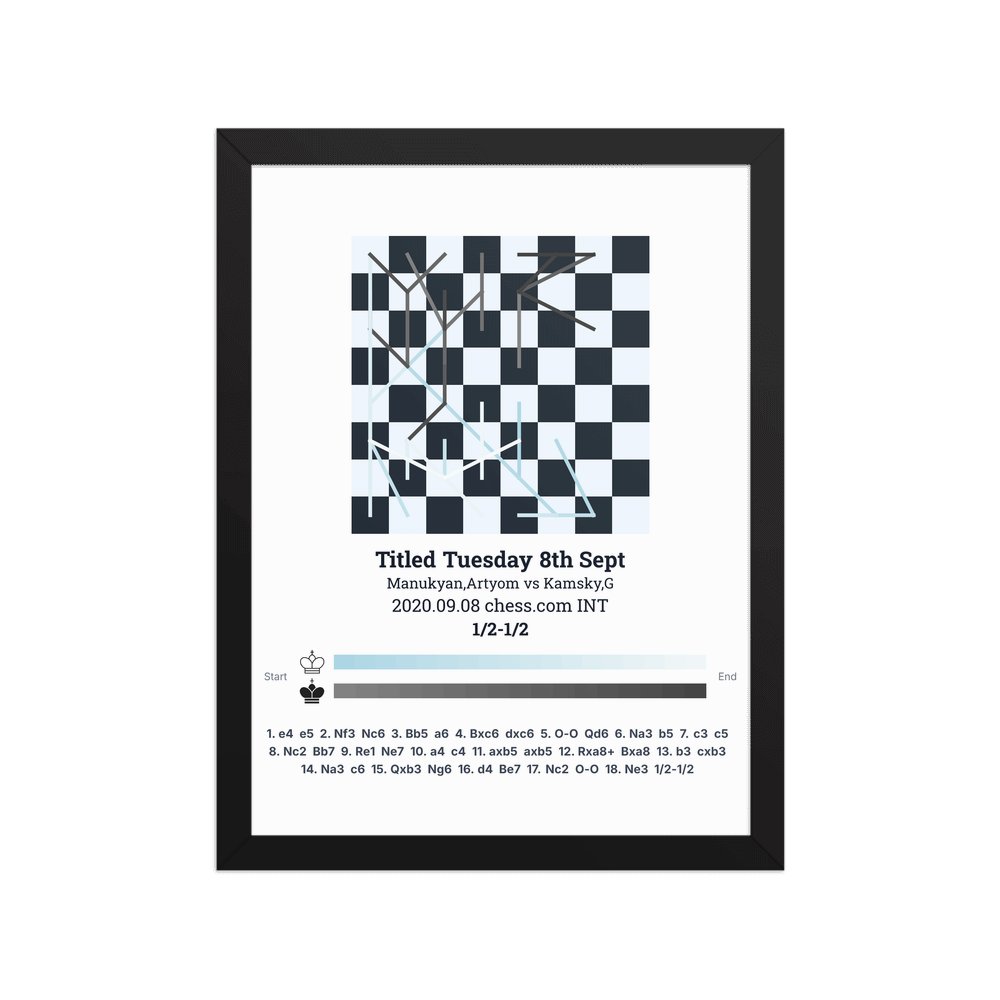 Museum-quality poster on thick, durable matte paper. A sharp, clean look for any chess visualisation.