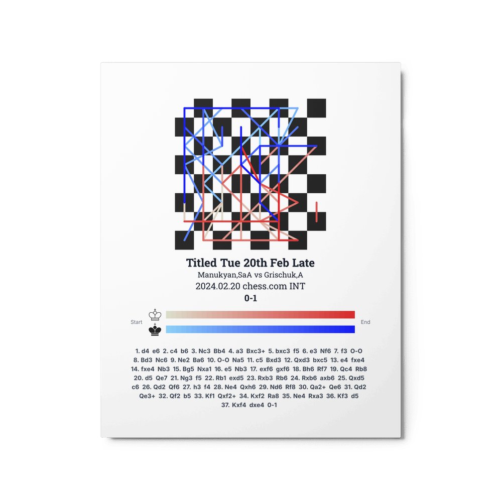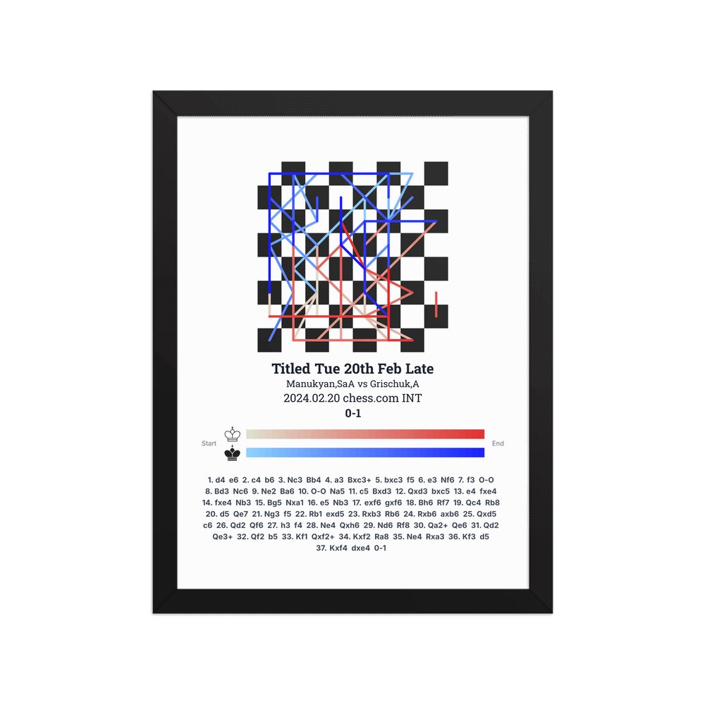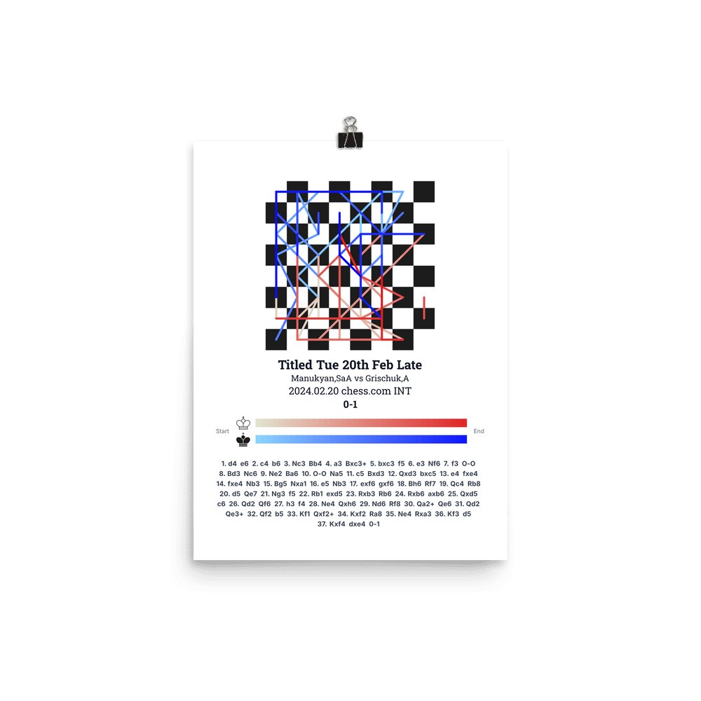 Museum-quality poster on thick, durable matte paper. A sharp, clean look for any chess visualisation.