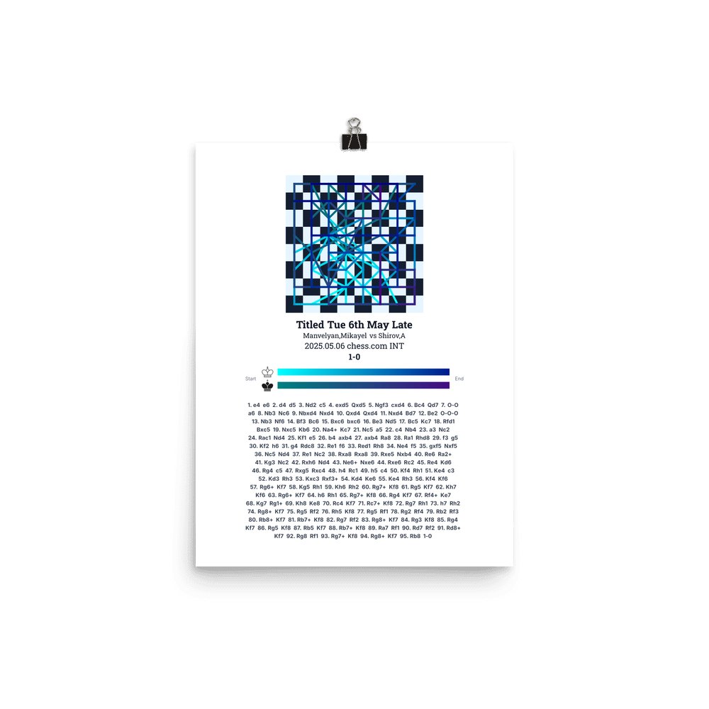 Museum-quality poster on thick, durable matte paper. A sharp, clean look for any chess visualisation.