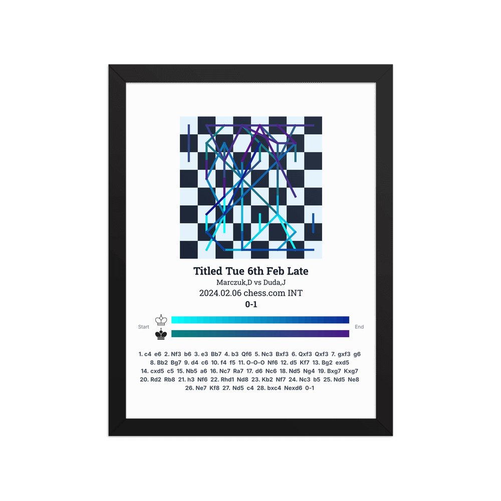 Museum-quality poster on thick, durable matte paper. A sharp, clean look for any chess visualisation.