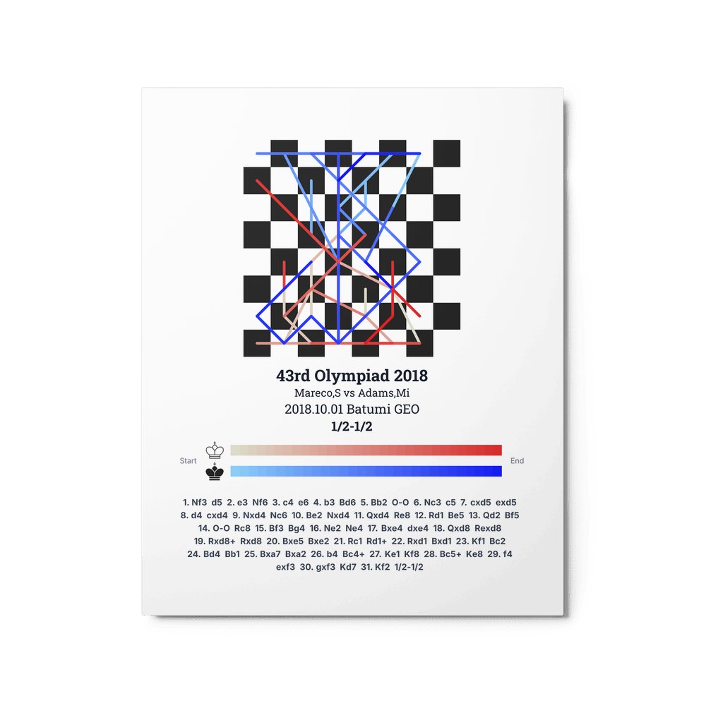 Museum-quality poster on thick, durable matte paper. A sharp, clean look for any chess visualisation.