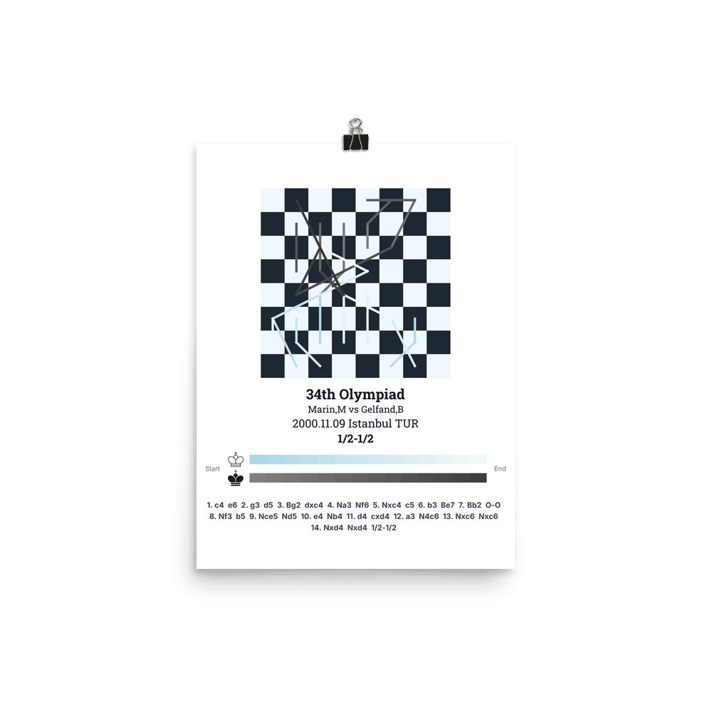 Museum-quality poster on thick, durable matte paper. A sharp, clean look for any chess visualisation.
