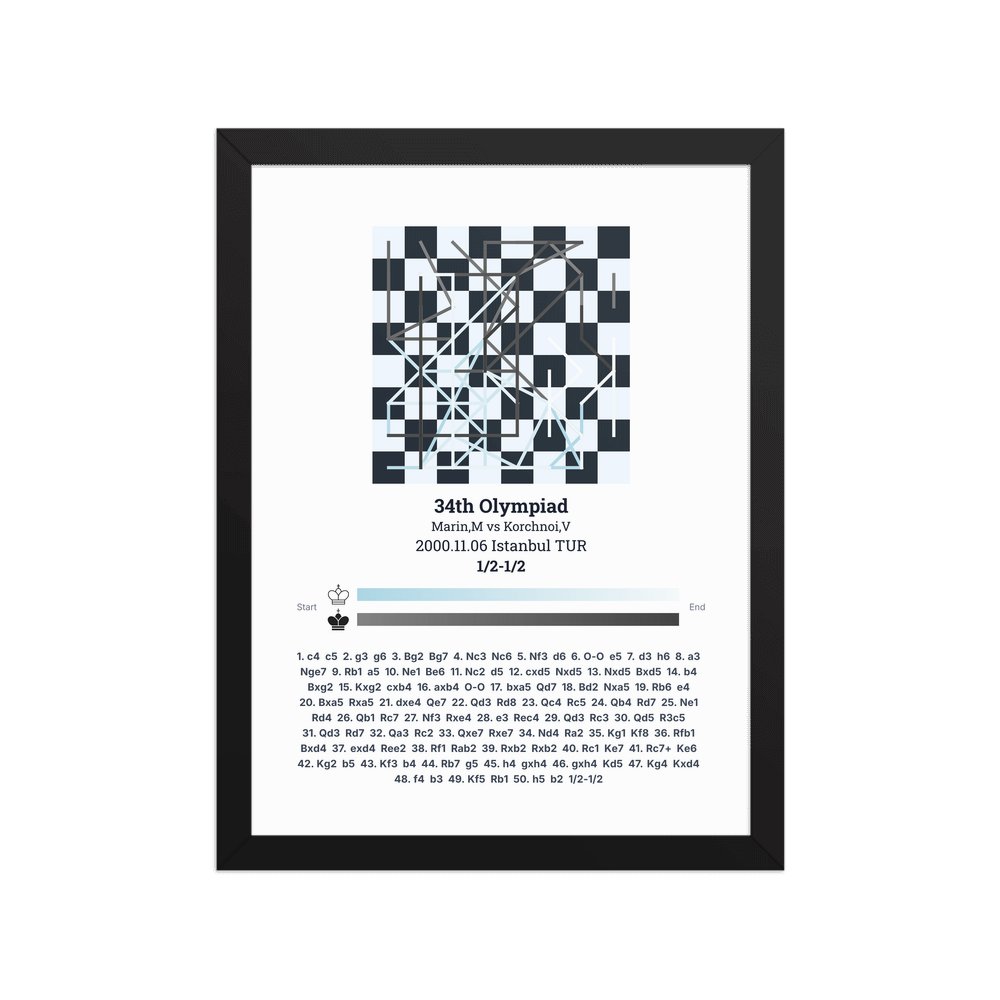Museum-quality poster on thick, durable matte paper. A sharp, clean look for any chess visualisation.
