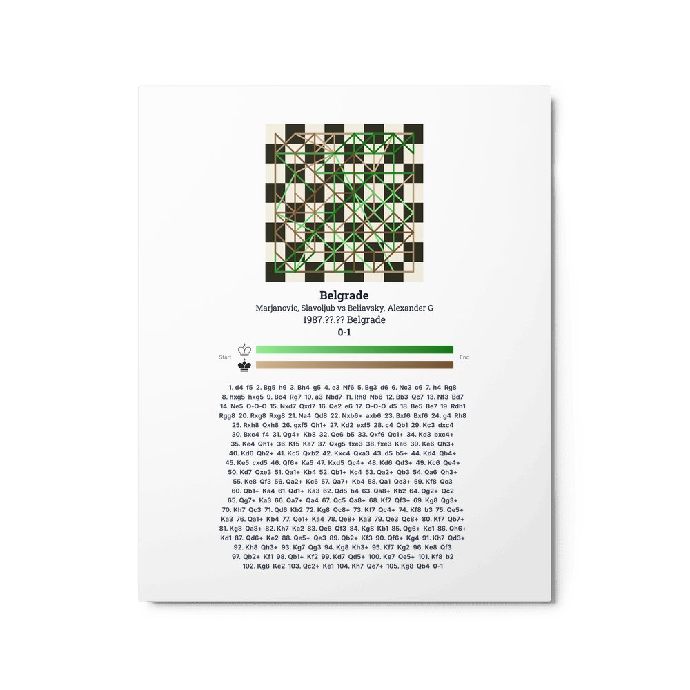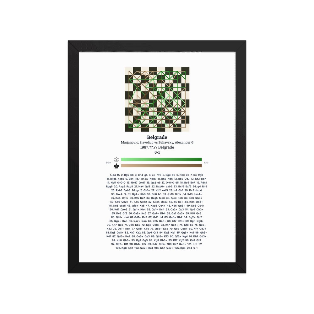 Museum-quality poster on thick, durable matte paper. A sharp, clean look for any chess visualisation.