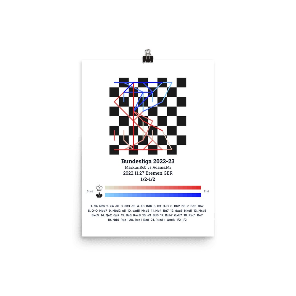 Museum-quality poster on thick, durable matte paper. A sharp, clean look for any chess visualisation.
