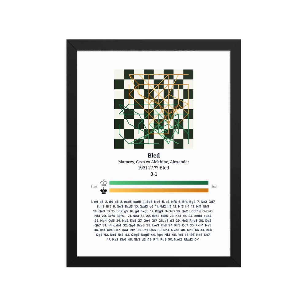 Museum-quality poster on thick, durable matte paper. A sharp, clean look for any chess visualisation.
