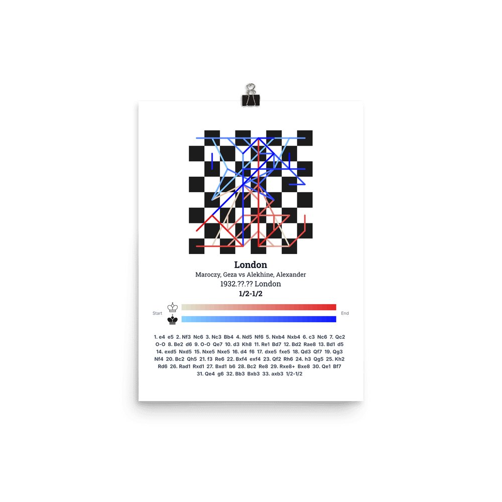 Museum-quality poster on thick, durable matte paper. A sharp, clean look for any chess visualisation.