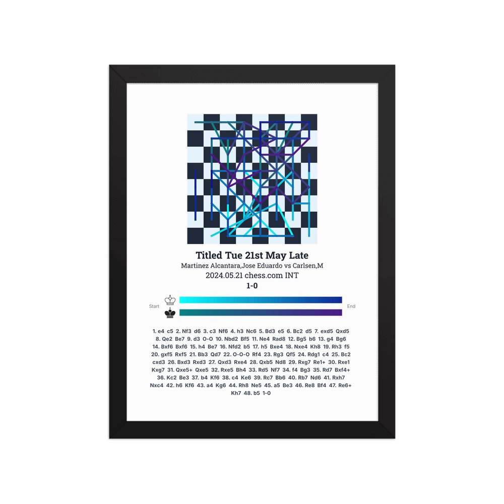 Museum-quality poster on thick, durable matte paper. A sharp, clean look for any chess visualisation.