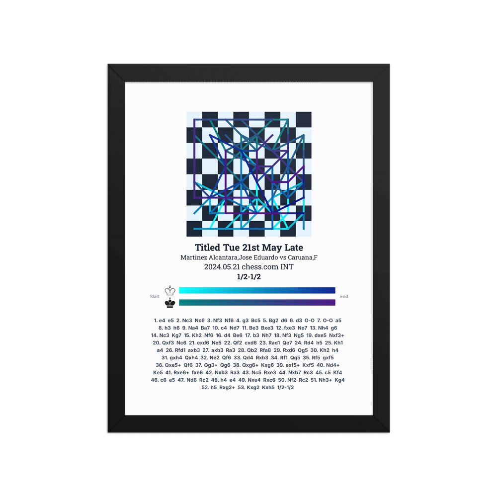 Museum-quality poster on thick, durable matte paper. A sharp, clean look for any chess visualisation.