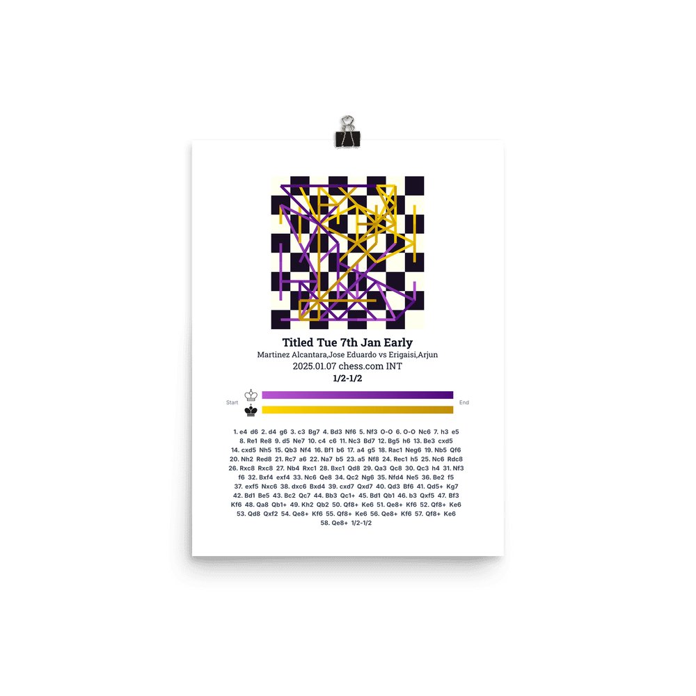 Museum-quality poster on thick, durable matte paper. A sharp, clean look for any chess visualisation.