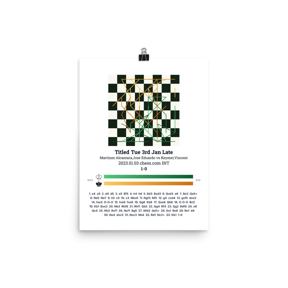 Museum-quality poster on thick, durable matte paper. A sharp, clean look for any chess visualisation.