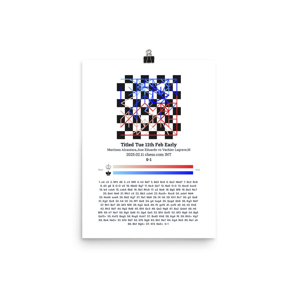 Museum-quality poster on thick, durable matte paper. A sharp, clean look for any chess visualisation.