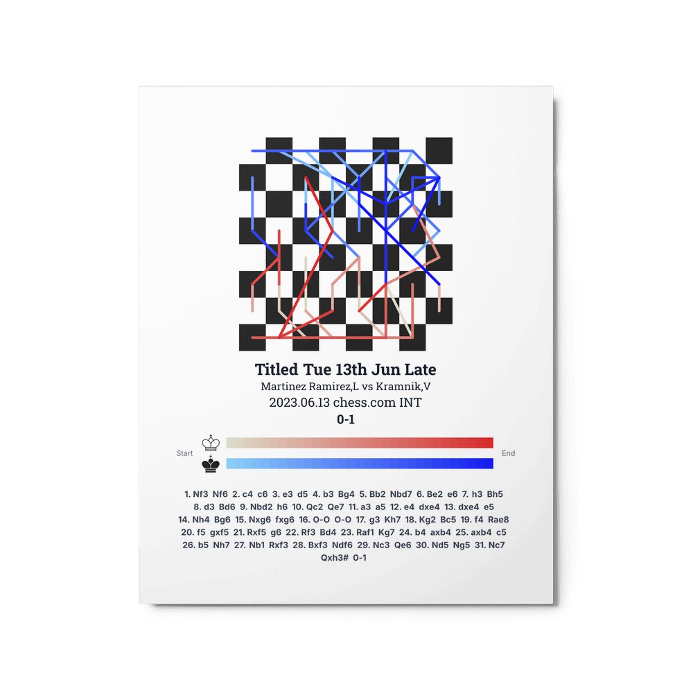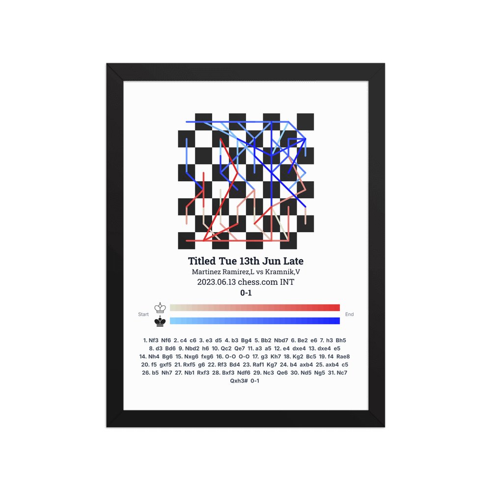Museum-quality poster on thick, durable matte paper. A sharp, clean look for any chess visualisation.