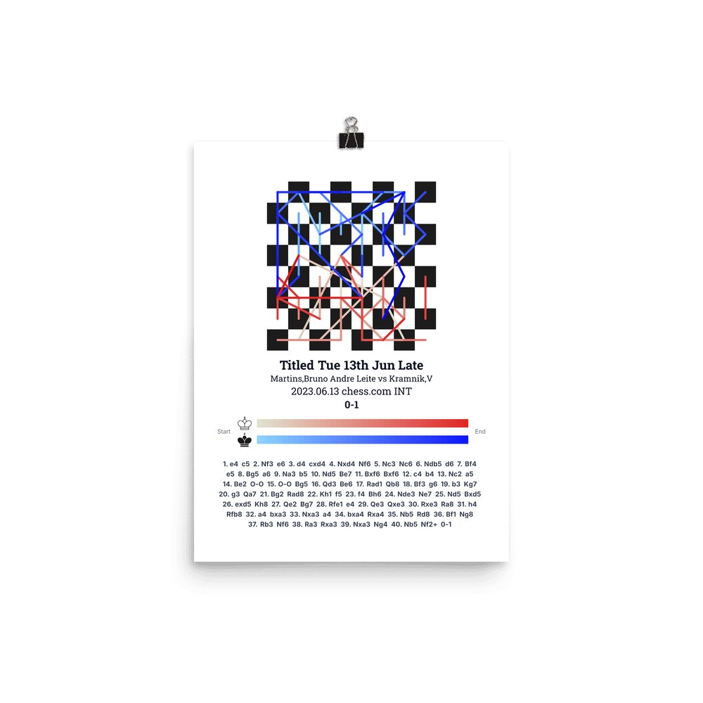 Museum-quality poster on thick, durable matte paper. A sharp, clean look for any chess visualisation.