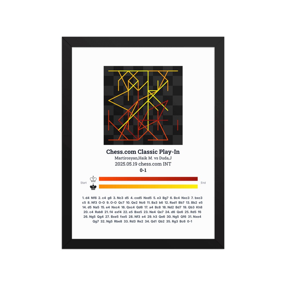 Museum-quality poster on thick, durable matte paper. A sharp, clean look for any chess visualisation.