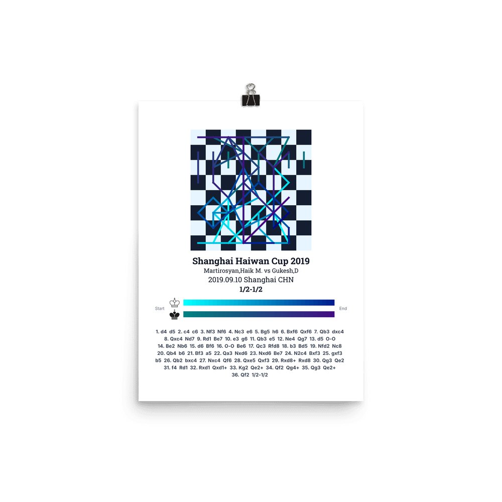 Museum-quality poster on thick, durable matte paper. A sharp, clean look for any chess visualisation.