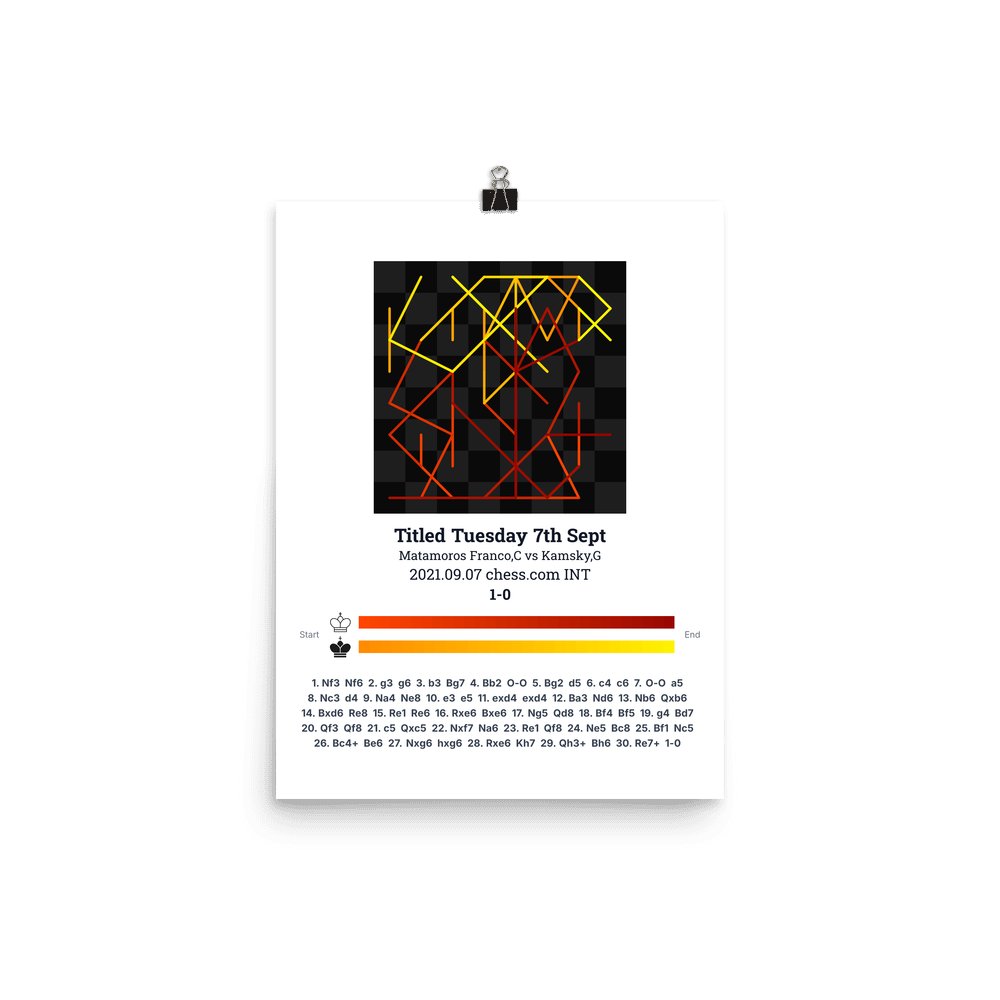 Museum-quality poster on thick, durable matte paper. A sharp, clean look for any chess visualisation.