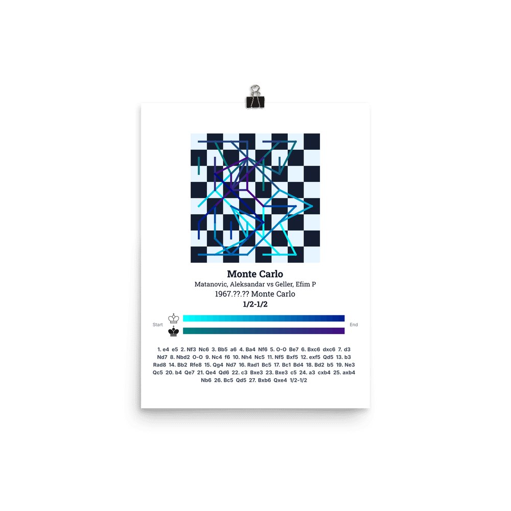 Museum-quality poster on thick, durable matte paper. A sharp, clean look for any chess visualisation.