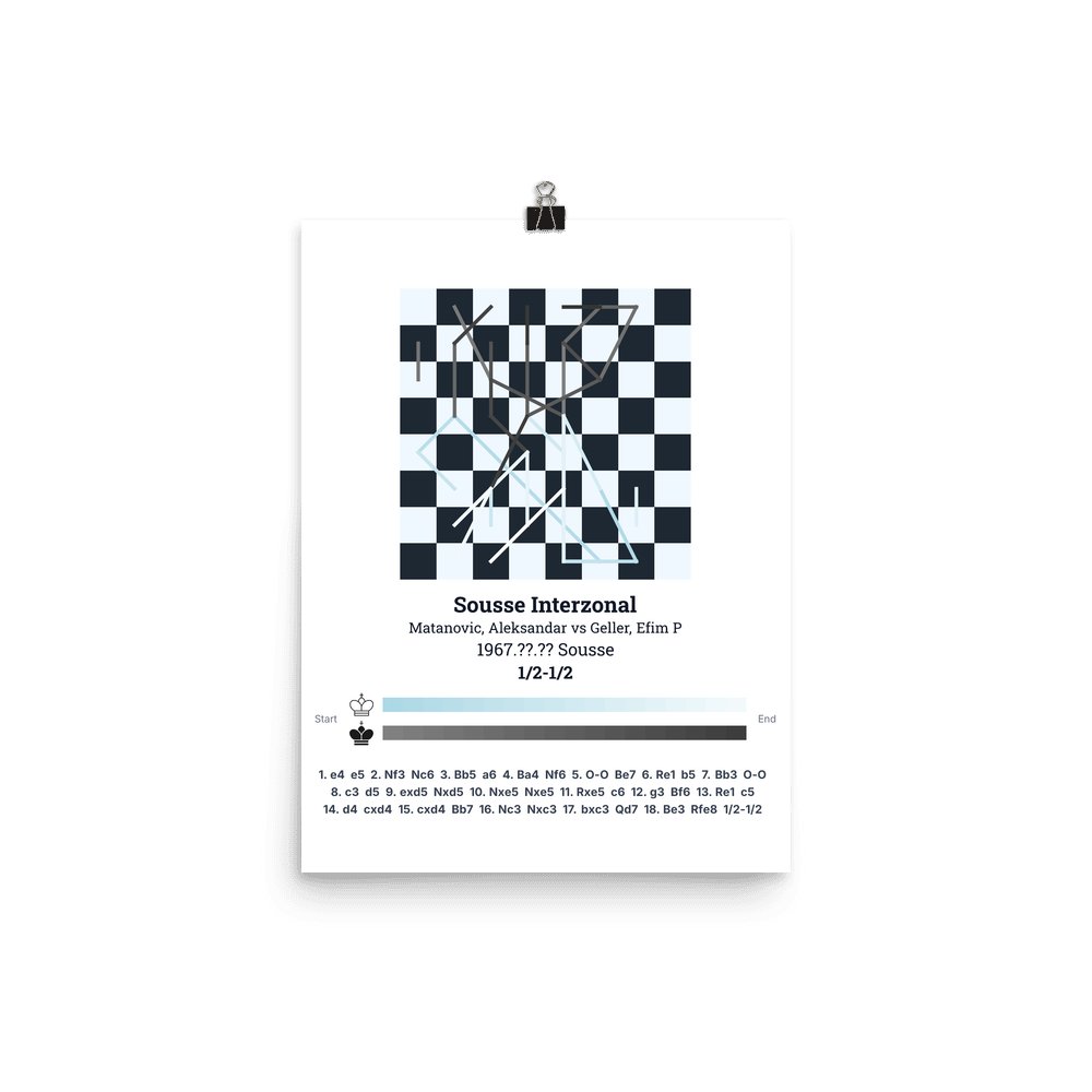 Museum-quality poster on thick, durable matte paper. A sharp, clean look for any chess visualisation.