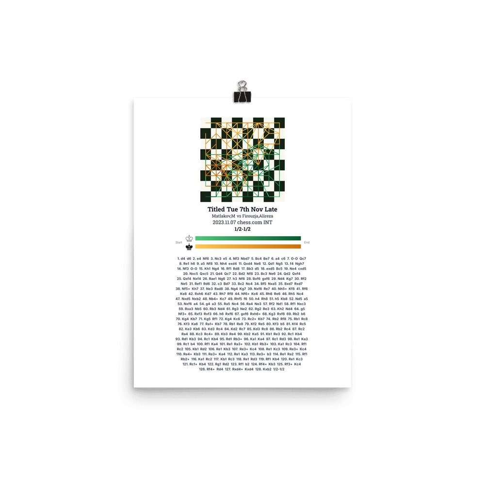 Museum-quality poster on thick, durable matte paper. A sharp, clean look for any chess visualisation.