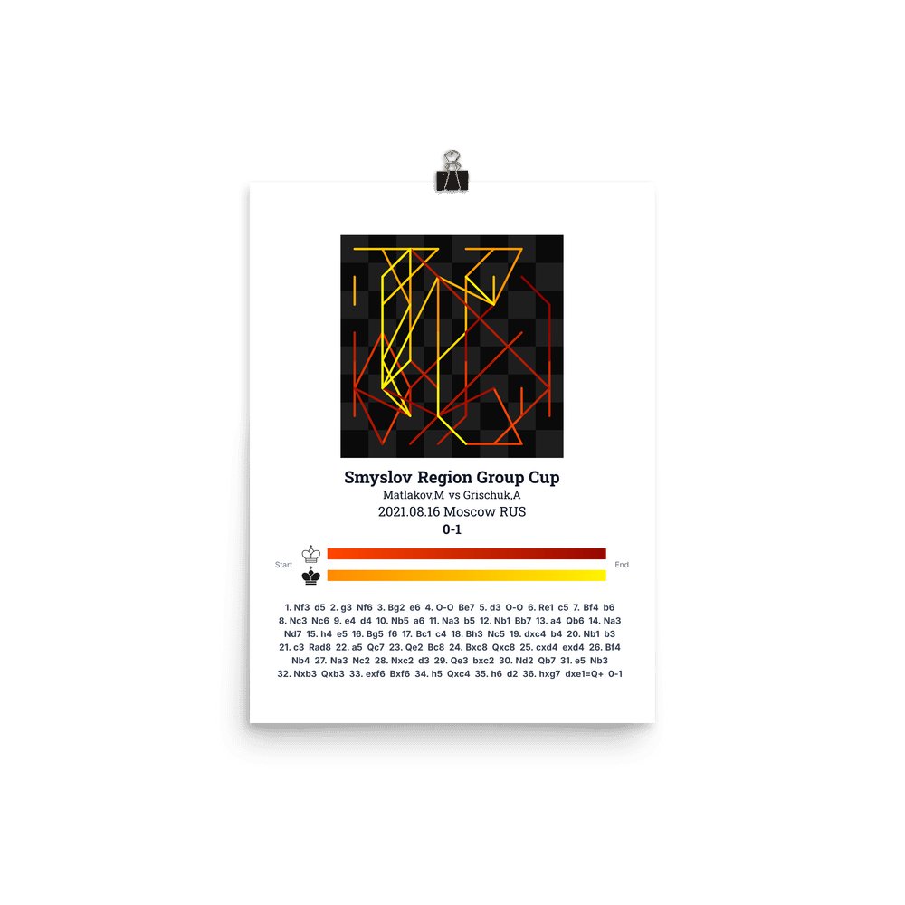 Museum-quality poster on thick, durable matte paper. A sharp, clean look for any chess visualisation.