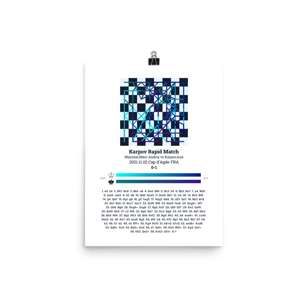 Museum-quality poster on thick, durable matte paper. A sharp, clean look for any chess visualisation.