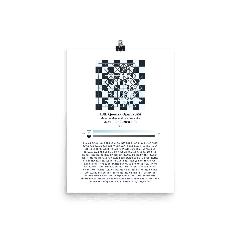 Museum-quality poster on thick, durable matte paper. A sharp, clean look for any chess visualisation.